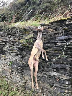 in der vergangenen Woche hatte ich ein längeres Gespräch mit unserem Jagdpächter. Er zeigte mir rund 15 Bilder von verendetem Rot- und Damwild, welches im vergangenen Jahr von freilaufenden Hunden gerissen wurde oder sich in Zäunen regelrecht selbst erwürgt hat. Ich habe mir nun lange überlegt, wie ich die Thematik am besten anspreche, ohne jedoch alle Hundehalter über einen Kamm zu scheren. Da meine bisherigen Bitten und Aufforderungen beim Hundekot und der Leinenpflicht im Ort schon nicht fruchten, bin ich der Meinung, einen Teil der Bilder hier zu veröffentlichen, um so einmal deutlich zu machen, welche Folgen freilaufende Hunde und Zäune im Wald haben können: