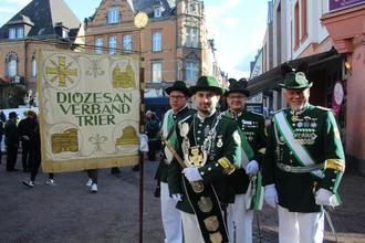 BOPPARD. (EF). Beim diesjährigen Bundesschützenfest des Bundes der Historischen Deutschen Schützenbruderschaften, das in Mayen über drei Tage hinweg stattfand, traten im September die Bezirkskönige des Bundes an, um den Bundeskönig und die Diözesankönige zu ermitteln. Der in Bad Salzig lebende Alexander Sablozki vom Bezirk Rhein-Hunsrück-Mosel erlangte hierbei die große Würde des Diözesankönigs des Bistums Trier. In der 513-jährigen Geschichte der Bopparder Schützengesellschaft 1510/1848 e.V. ist er somit der Erste, der dies geschafft hat. Ihm zu Ehren veranstaltete der Diözesanverband Trier am vergangenen Sonntag ein Diözesankönigsfest mit Übergabe der Diözesanstandarte. Ausrichter eines solchen Festes ist die jeweilige Bruderschaft des Diözesan-Schützenkönigs, hierfür zuständig Boppard.
