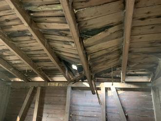 Mit freiwilligen Helfern rissen wir das Dach ab und entsorgten es. Zwischenzeitlich wurde von der Stadtverwaltung das Material zur Instandsetzung beschafft. Der hintere Querbalken wurde bereits repariert. Die Dachsparren werden jetzt zugeschnitten und sollen schnellstmöglich angebrachtt werden. Danach erfolgt noch die Dachverschalung und das Abdichten mit Dachpappe und Schindeln.