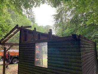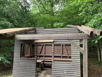 Die Wanderschutzhütte „Auf dem Sattel“ wurde 1986 unter meiner Leitung vom Verschönerungsverein Buchholz e.V. gebaut. Auf das Dach fiel einmal ein Baum, der dort Schäden verursachte, die nicht erkannt wurden. Nun sind die Dachbalken und die Verschalung morsch, so dass die Hütte im Sommer gesperrt werden musste.
