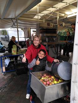 Rund fünf Tonnen Äpfel wurden am Donnerstag am Alten Bahnhof bis zum späten Abend zu über 2300 Litern Apfelsaft gepresst. Die Möglichkeit der Verarbeitung der Äpfel durch die mobile Apfelsaftpresse ist ein wichtiger Beitrag zum Erhalt der landschaftsprägenden Streuobstwiesen in unserer Region. Nochmals herzlichen Dank an alle Mitwirkenden und an alle, die ihre Streuobstwiesen regelmäßig pflegen und ernten.