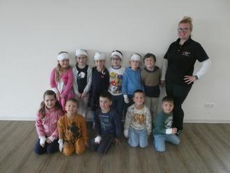 Unter der Anleitung von Manuela Föhr übten die Kinder die stabile Seitenlage, lernten, wie man einen Notruf absetzt, und erfuhren, wie sie sich bei kleineren Unfällen oder Verletzungen verhalten sollten. Besonders spannend war es für die Kinder, sich gegenseitig zu verbinden, was sie zum Abschluss des Kurses durften. Jedes Kind erhielt eine Urkunde als Erinnerung an die Teilnahme.