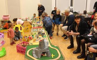 Im Foyer der Stadthalle, sorgten die „Modell-Bahn-Freunde-2000 Rheingold e. V.“ für leuchtende Augen. Der im Jahr 2000 gegründete Verein, sorgte nicht nur bei den Kindern für leuchtende Augen, sondern auch bei den Erwachsenen, denn die fühlten sich in ihre Kindheit zurückversetzt. Die Mitglieder selbst, sind Liebhaber der kleinen Bahnen, von der Spur Z (1:220) über N (1:160) und H0 (1:87) bis zu den Spuren I (1:32). Herrlich zu sehen, wie Dampfloks mit Waggons, eingebettet durch unsere schöne, nachgebaute Landschaft fahren.