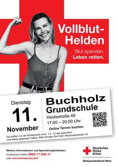 Das Rote Kreuz ruft in Boppard-Buchholz am Dienstag, 11.11.2025 von 17:00 bis 20:00 Uhr zur Blutspende in der Grundschule Buchholz, Heidestraße 49, auf.