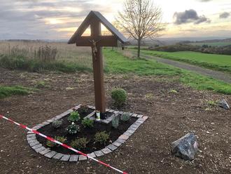 Am so genannten Promilleweg vom Dorf zum Ohlenfeld (gegenüber vom Spielplatz in den Herrenstücken) wurde das morsche Kreuz erneuert und das Umfeld neugestaltet. Das Blumenbeet mit einer Natursteineinfassung versehen und das Beet neu bepflanzt.