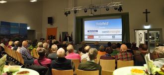 Die ‚Jupiter Hymn von Gustav Holst‘ war der musikalische Auftakt für die Grußworte. Bürgermeister Jörg Haseneier zollte dem Autor und der Arbeitsgruppe großen Respekt. Da er sich im Vorfeld der Veranstaltung schon ein Exemplar der Chronik anschauen konnte, beeindruckte ihn das Engagement der Holzfelder Bürger in den letzten Jahrhunderten.