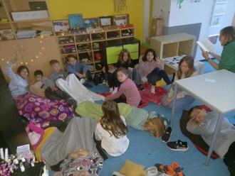 Die Räume der Schule wurden mit Kissen, Decken, Lichterketten und Kuscheltieren in gemütliche Lesehöhlen verwandelt.