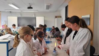 Mit großem pädagogischem Geschick erklärten die Jugendlichen wie man durch Papierchromatografie die unterschiedlichen Farben in Filzstiften untersuchen oder wie man durch Wasser Schallwellen sichtbar machen kann. Besonders gut kam bei den Grundschülern die Herstellung von farbigem Schleim an. Unter fachkundiger Anleitung von Schülern aus der Klasse 10 erprobten die Grundschüler in diesem Experiment, mit welcher Flammenfarbe unterschiedliche Stoffe verbrennen.