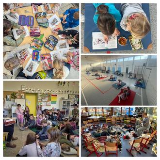 Beim Lesepicknick in der Sporthalle stellten sich die Kinder der zweiten Schuljahre gegenseitig ihre Lieblingsbücher vor. Sie erzählten einander, worum es in ihrem Lieblingsbuch geht und welche Figuren sie besonders mögen. Die Erstklässlerinnen und Erstklässler konnten den lustigen Sams-Geschichten auf Decken und Kissen gekuschelt lauschen, mit dem Sams reimen und mit Sprache experimentieren. Auch in den anderen ersten Klassen entstanden gemütliche Lesehöhlen und es konnte in Büchern geschmökert werden. Zum Bilderbuch „Fieps und Pieps“ reimten die Kinder und spielten kleine Theaterszenen. Die Patenklassen lasen den Erstleserinnen und Erstlesern die Geschichte „Der Löwe in dir“ vor. Die Vorleseaktion hatte sich sogar im Ort Buchholz rundgesprochen: Drei Klassen durften einfach nur zuhören, entspannen, mitfiebern und weitererzählen, als die Buchholzerin Frau Melder und der Buchholzer Herr Windhäuser Geschichten von Cornelia Funke und Pija Lindenbaum vorlasen.