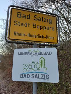 2025 ist ein besonderes Jahr für Bad Salzig. Vor 100 Jahren, im Jahr 1925, wurde der damaligen Gemeinde Salzig der Titel Mineralheilbad verliehen, aus Salzig wurde Bad Salzig. Um auf das Jubiläum hinzuweisen, wurden nun die Mineralheilbad-Schilder an den Ortseingängen erneuert und mit dem Bad Salziger Logo versehen. Als Veranstaltungen im Rahmen des Jubiläumsjahres sind die Einweihung der Bad Salziger Entdeckertour am 30. März, der Weinsommer mit Oldtimertreffen und Modellbauausstellung am 28. Juni sowie das Erscheinen der Ortschronik im Herbst geplant.