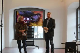 Die Künstlerin Juliane Gottwald und der Kulturjournalist Stefan Zekorn bei der Eröffnung