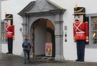 Zwischen den beiden riesigen Nussknackern gings zum Handwerkermarkt
