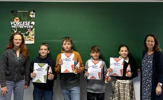 Beide sechsten Klassen hatten sich mit ihren Deutschlehrerinnen Dorothee Wickert, krankheitsbedingt vertreten von Ruth Wunsch, und Nicole Michalsky am Vorlesewettbewerb beteiligt und jeweils zwei Klassensieger ausgewählt.