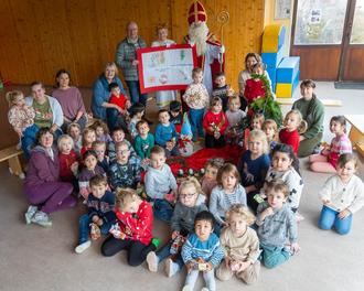 In der Kita „Abenteuerland“ freuten sich die Kleinsten aus dem „Zwergenland“ darüber, dass der Nikolaus ihnen von draußen durchs Fenster freundlich zuwinkte und einen Sack mit Geschenken vor die Tür stellte. Einer der Höhepunkte des Nikolausmorgens war die aufregende Suche nach dem Nikolaus im nahegelegenen Wald, an der mehr als 40 Kinder der Kita „Abenteuerland“ teilnahmen. Voller Vorfreude durchstreiften die Kinder die Natur – und fanden schließlich den Nikolaus, der sie herzlich begrüßte und natürlich auch ihnen nach einigen Liedern einen Sack mit gefüllten Nikolausstrümpfen und Nikolausgeschenke der Stadt überreichte.