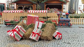 Die Weihnachtsbahn steht zur Abfahrt bereit