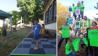 Die Kindergartenkinder freuten sich über neues Wasserspielzeug für den Außenbereich und die Grundschule konnte die Sporttrikots aufstocken, damit nun auch alle Schulkinder mit den schönen grün-leuchtenden Shirts bei Schul- und Sportveranstaltungen ausgestattet werden können. Alle Kinder sagen vielen lieben Dank!