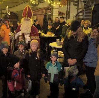 selbst der Nikolaus ließ es sich nicht nehmen am 6. Adventsfenster vorbeizuschauen. Er hatte für jedes Kind eine Kleinigkeit dabei, denn die Rheinbayer Kinder waren ja auch das ganze Jahr über sehr brav gewesen.