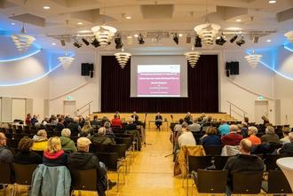 Rund 70 Bürgerinnen und Bürger waren in die Stadthalle gekommen und zeigten Interesse am Dialog mit den Behörden zu den Biotoppflegemaßnahmen im Naturschutzgebiet „Hintere Dick - Eisenbolz“.