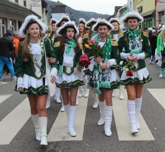 Zum Abschluss des Umzuges kam dann auch die Grün-Weiße Flotte des CV angerollt. Möhnen, Zinnsoldaten, Bambinis, Miniballett, Tanzgruppen, Fußgruppe Stehtisch, Kinderballett, Jugendballett, Damenballett und der Elferrat, stellten eindrucksvoll unter Beweis, warum die Grün-Weißen Sterne auch tagsüber eine solche Strahlkraft in Bad Salzig haben.