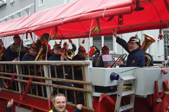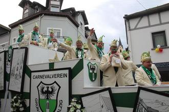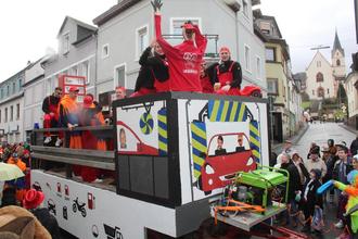 BAD SALZIG. (EF) Pünktlich um 14.11 Uhr, setzte sich der 45. Bad Salziger Karnevalszug in Bewegung. Angeführt von der Feuerwehr und dem Fanfarenzug Grün-Weiß Bad Salzig, suchten weit über 50 Gruppen, Motivwagen, Musikvereine und mehr, den Weg durch Bad Salzig´s geschmückte Straßen und Gassen.