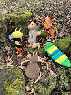 Unter anderem krochen eine bunte Raupe, eine Ameise, eine ganze Kängurufamilie, ein Löwe, ein Wolf, ein Drache, eine Biene und sogar ein Grüffeltier hervor. Es stellte sich heraus, dass es sich um liebevoll genähte Handpuppen handelte, die vermutlich bereits viele fröhliche und fantasievolle Spielstunden mit den Kindern bereichert haben. Auch ein Theatervorhang war dabei – perfekt für kleine Aufführungen und Theaterstücke.