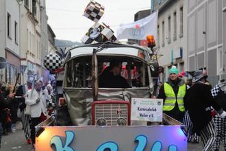 Bad Salzig (E. F.) Pünktlich um 14:11 Uhr, setzte sich der 48. Bad Salziger Karnevalzug mit 48 Motivpunkten in Bewegung. Farbenfrohe Wagen und Gruppen konnten die beiden Moderatoren Christian Fuchs (1. Vorsitzender CV Bad Salzig) und Volker Kahl (Elferratsmitglied) begrüßen und vorstellen. Zugleich ist dieser Zug der Auftakt in die Umzüge der Stadt Boppard gewesen. Angeführt von Polizei, Feuerwehr und dem Fanfarenzug Grün-Weiß Bad Salzig, suchten sich Gruppen, Motivwagen, Musikvereine den Weg durch Bad Salzigs geschmückte Straßen und Gassen.