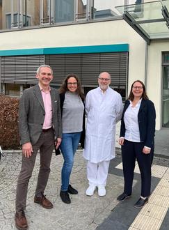 Dr. med. Boris Mitric (links) mit dem Direktorium des Heilig Geist (von rechts): Kaufmännische Direktorin Alexandra Kiauk, Ärztlicher Direktor Dr. med. Andreas Mulfinger und Pflegedirektorin Alexandra Dullisch.