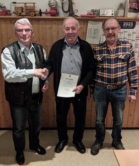 Kassierer Robert Müller, Egon Müller und 1. Vorsitzender Wilfried Lindenlauf (v.l.)