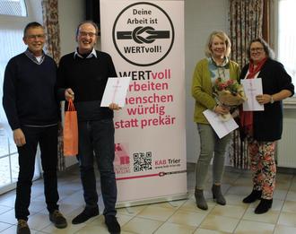 REIFFERSCHEID-RODDER. Zur Jahreshauptversammlung für das Jahr 2023 traf sich die Katholische Arbeitnehmer Bewegung (KAB) Ortsverband Reifferscheid-Rodder im Gemeindehaus in Rodder. Der Vorsitzende Peter Kaiser eröffnete im gut gefüllten Saal die Versammlung und begrüßte die Mitglieder sowie einige anwesende Gäste, darunter den Bezirksgeschäftsführer im Diözesanverband der KAB Trier Andreas Luce und den Ortspräses Michael Schaefer. Im Rückblick des vergangenen Jahres ist die 60-Jahr-Feier des Ortsverbandes ein Highlight gewesen, an die man sich gerne erinnerte. Hierzu hatte Andreas Luce eine kleine Bilderpräsentation zusammengestellt und präsentierte diese den Anwesenden. Die Feier führte unter anderem dazu, dass man noch vier neue Mitglieder gewinnen konnte, die nun aktiv im Ortsverband mithelfen und die Mitgliederzahl auf 32 steigern. Im Juli 2023 war der Ortsverband bei der KAB Brüggen-Bracht am Niederrhein zu Gast und half beim Spendentag für die Flutbetroffenen an der Ahr. 7.000,- Euro für die Gemeinde Fuchshofen war das Ergebnis dieses erfolgreichen Tages, die man gemeinsam dem Gemeinderat im September überreichte. Weiterhin gab es noch Veranstaltungen zum Thema „Prekäre Arbeitsplätze“ Ausbeutung der Trucker Fahrer in Osteuropa und Zustelldiensten, einen Film über den Jakobsweg sowie noch viele andere Aktivitäten. Für das Jahr 2024 sind ebenfalls wieder einige Veranstaltungen geplant. Unter anderem das beliebte Singen von Heimat- und Volksliedern, ein Bildervortrag über die „ewige Stadt“ Rom, ein Kaffee-Gespräch mit dem Thema „Zukunft Kirche“, ein Agenda-Kino in Hillesheim sowie eine Tagesfahrt nach Mainz zu Bischof Ketteler und der SchUM-Stätte (Unesco-Welterbe) mit dem Bildungswerk der KAB. Hauptthema des Tages aber war der Aufruf des KAB Bundesverbandes sich an der Europawahl im Juni zu beteiligen. Ein frei gewähltes und demokratisches Europaparlament mit über 700 Abgeordneten und zehn Parteien die zur Wahl stehen gilt es zu erhalten und zu festigen. Autokratie, Diktatur und Nationalismus sind keine Alternative für Deutschland und Europa, dass muss für uns alle undenkbar bleiben, der brutale Krieg in der Ukraine sollte dazu ein mahnendes Beispiel sein. Ehrungen standen auch noch auf dem Programm. Für 25 Jahre KAB-Zugehörigkeit wurden Doris Dörpinghaus-Stemmler und Hans Stemmler sowie die Eheleute Rita und Peter Kaiser für 40 Jahre ausgezeichnet. Bezirksgeschäftsführer Luce nahm die Ehrungen vor und gratulierte herzlich.