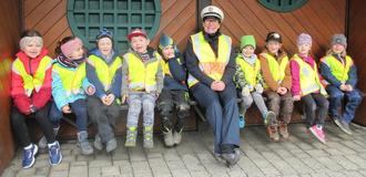 MÜLLENBACH. Jedes Jahr lädt die KiTa Müllenbach PHKin Eich von der Polizeiinspektion Adenau, in die Kindertagesstätte ein, um mit den kleinen Verkehrsteilnehmerinnen und Teilnehmern das sichere Verhalten im Straßenverkehr zu üben. Der Verkehrsvogel ADACUS, von einer Initiative des ADAC´s, bringt den Kindern spielerisch mit einem Lied, dem ADACUS-Song bei, wie man die Straße überquert. PHKin Eich kam ein zweites Mal in die Kindertagesstätte, um am örtlichen Zebrastreifen in Müllenbach zu üben.
