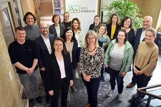Die Teilnehmenden des ersten Netzwerktreffens im Kreishaus mit Landrätin Cornelia Weigand und Maike Gausmann-Vollrath (beide im vorne im Bild).