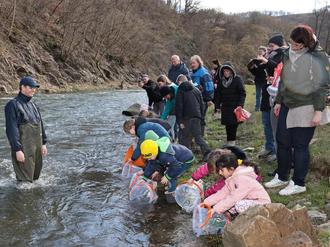 Vorsichtig wurden die Junglachse, auch „Smolts“ genannt, von den Kindern in die Ahr gesetzt.