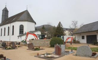 Die letzten Arbeiten am von der Flut schwer beschädigten Friedhof in Antweiler laufen.
