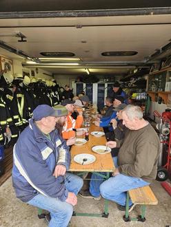 Die Liste der Arbeiten für Ostersamstag war lang und das Wetter wollte am Anfang auch nicht richtig mitspielen. Doch dank 32 aktiver Helfer und 3 Helfern im Hintergrund (Kuchen, Waffeln, Getränke und Geldspenden) konnten die Arbeiten locker und mit viel Spaß bei der Arbeit ausgeführt werden. Der Container füllte sich durch eifrige Sammler mit Ihren Fahrzeugen mehr und mehr, die Sinkkästen in der gesamten Ortslage wurden gesäubert, schweres Gerät kam zum Einsatz, das Wasserhaus wurde für eine Abdeckung vorbereitet, die Wanderbänke wurden wieder an den Wegen aufgestellt, die Hecken an der Kapelle und Spielplatz zurückgeschnitten, die Dachrinnen und Fenster der Kapelle gereinigt, alte Bäume bearbeitet, der Bauhof aufgeräumt, die Beete in der gesamten Ortslage gesäubert sowie die Stellplätze rund um das Gemeindehaus. Ich hoffe, ich habe nichts vergessen. Wie gesagt, die Liste war lang, aber aufgrund der vielen Helfer wurden die Arbeiten souverän abgearbeitet. Anschließend wurde sich zünftig am Gemeindehaus gestärkt dank der Essensspende von unserem Jagdpächter S. Schumacher und der Getränkespende von T. Naumann. Für die Spätschicht, die noch bis ca. 20:00 Uhr ein „Brainstorming" durchführte, war noch lecker Bierchen, Kuchen, Nussecken und Waffeln da.