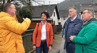 Ortsbürgermeister Helmut Lussi (li.) informierte die CDU-Abgeordneten (v.r.:) Horst Gies, Gordon Schnieder und Petra Schneider über den Sachstand der Wiederaufbauarbeiten