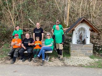 Dank der Unterstützung von Westenergie – Aktiv vor Ort - konnte am Radweg zwischen Dümpelfeld und Niederadenau eine neue Sitzbank angeschafft und aufgestellt werden. Nico Fuhrmann von der Fa. Fuhrmann Tiefbau aus Dümpelfeld sowie zahlreiche HelferInnen der Dorfgemeinschaft Dümpelfeld wählten als Aufstellort für die neue Bank einen beliebten Platz am Radweg der sogenannten Vulkan-Rad-Route aus. Unmittelbar neben dem stets gepflegten St.Josef-Bildstock wurde zunächst das Planum hergerichtet. Anschließend konnte die neue Sitzbank fachmännisch befestigt und aufgestellt werden. Radfahrer, Wanderer und auch die Nutzer des gleichzeitig als Wirtschaftsweg dienenden, neu hergestellten Weges können nunmehr an diesem schönen Plätzchen eine Rast einlegen. Dabei gilt es, den Blick in die Natur schweifen zu lassen und/oder am Bildstock innezuhalten.