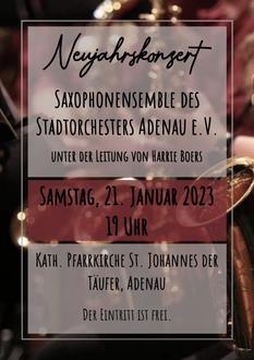 ADENAU. Das Saxophon-Ensemble des Stadtorchesters Adenau lädt herzlich zum Neujahrskonzert am Samstag, 21. Januar um 19 Uhr in die katholische Pfarrkirche in Adenau ein.