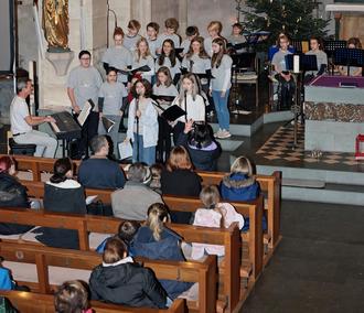 ADENAU. Die Bläserklassen 6b, 7 und der Schulchor lieferten in der katholischen Pfarrkirche Johannes der Täufer unter der Leitung ihrer Musiklehrerin Lea Thelen und den Musiklehrern Stephan König und Frank Pohl einen überzeugenden Auftritt. Kerstin Auel (10.) und Antonia Seidel (10.) führten als Moderatorinnen durch das Programm. Ein breites Spektrum wurde aufgeführt, saisongerecht waren adventliche Lieder rege vertreten, außerdem amerikanische Weihnachtslieder und festliche Barockmusik. Der Schulchor begann sein Programm mit „Christmas time“ von Bryan Adams. Zum Schluss sang der Chor ein Weihnachtslied in kölscher Mundart. Viktoria Retterath aus der Klasse 5b trug zwischen den Musikbeiträgen ein Weihnachtsgedicht vor. Zum krönenden Abschluss des Abends wurden gemeinsam mit dem Publikum weihnachtliche Lieder gesungen und gespielt. Ein recht wohlverdienter Applaus der zahlreich erschienenen Eltern, Großeltern, Geschwister, Lehrer und Mitschüler war der Lohn für die engagierte Aufführung. Rektorin Monika Schüller-Diewald lobte die Vorzüge des schulischen Musizierens und zeigte sich begeistert von der Gemeinschaftsleistung, die sich etwa in der souveränen Wahrnehmung der Musiker untereinander zeigte. Die Kinder der Bläserklassen haben die Möglichkeit, bei dem auf zwei Jahre angelegten Unterrichtskonzept im regulären Musikunterricht ein Instrument sowie Grundlagen des Instrumental- und Ensemblespiels zu erlernen. Die Instrumentierung der Bläserklassen ist reichhaltig: Querflöte, Klarinette, Altsaxophon, Tenorsaxophon, Trompete, Tuba, Posaune und Euphonium kommen in der Bläserklasse zum Einsatz. Es wird jetzt schon fleißig geübt, denn die nächsten Konzerte und Auftritte stehen bald auf dem Programm. Ein Höhepunkt wird im Sommer der Musikabend sein, an denen sich die Bläserklassen und der Chor der Hocheifel Realschule plus präsentieren werden. Der Chor wird zusätzlich im Sommer unter der Leitung von Fabian Sennholz (Pianist der Tim Bendzko-Band) gemeinsam mit Schülern anderer Schulen einen großen Chor bilden und in Düsseldorf im PSD Bank Dome ein großes Konzert mit Live-Band zum Thema „...und die Chöre sind zurück!“ geben.