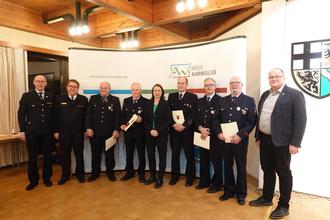 Bei einer Feierstunde im Kreishaus bezeichnete die Landrätin den Dienst in der Wehr als „unbezahlbaren Dienst an unserer Gesellschaft.“ Weigand machte aber auch deutlich, dass sich die kommunalen und kreiseigenen Feuerwehr- und Katastrophenschutz-Strukturen für räumlich und zeitlich eng umgrenzte Einsätze äußerst effizient erweisen, in langen Lagen reiche dieses System aber nicht aus, was die verheerende Flutkatastrophe im Sommer 2021 äußerst schmerzhaft an den Tag brachte. Die im Katastrophenschutz angewendete Partikularisierung stoße hier an ihre Grenzen. „Während Sie, die Freiwilligen Feuerwehren im Kreis, zusammen mit den anderen Akteuren der Blaulichtfamilie, der weißen Schiene und den Verwaltungskräften das Rückgrat der lokalen Gefahrenabwehr, des kreiseigenen Katastrophenschutzes bilden, mangelt es eklatant an übergeordneten Katastrophenschutz-Strukturen auf Landes- und Bundesebene“, so Weigand. Sie betonte, die Notwendigkeit zur Schaffung geeigneter übergeordneter Katastrophenschutzstrukturen sei nun allen bewusst und forderte neue, schlagkräftige Einheiten zu formen, so mit dem in Planung befindlichen Landesamt für Katastrophenschutz.