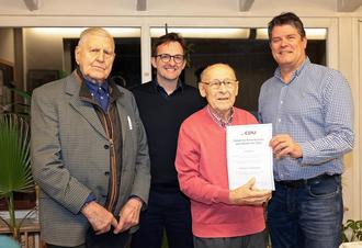 ADENAU. Der langjährige Kommunalpolitiker und Vorsitzende des Vereins für Heimatpflege in Adenau, Hermann Lehmann, wurde kürzlich für 50-jährige Mitgliedschaft in der Christlich Demokratischen Union mit der Ehrenurkunde des CDU-Bundesverbandes geehrt. Anlässlich seines 92. Geburtstages erhielt Lehmann Besuch einer Delegation der CDU-Adenau. Neben dem Vorsitzenden des CDU-Gemeindeverbandes, Michael Korden, und dem Vorsitzenden des CDU-Ortsverbandes Adenau, Dirk Lenzen, hatte es sich mit Willi Kiesewalter auch ein langjähriger Mitstreiter und Weggefährte von Lehmann nicht nehmen lassen an der Feierstunde teilzunehmen.
