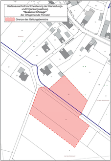 Die Ortsgemeinde Pomster beabsichtigt mit der 2. Erweiterung der Klarstellungs- und Ergänzungssatzung „Gesamte Ortslage“ am südlichen Ortsrand im Bereich der Flurlagen „Auf dem Wasemtriesch“ und „Auf dem Kürtensuhr“, einzelne Außenbereichsflächen in den im Zusammenhang bebauten Ortsteil von Pomster einzubeziehen. Hierzu hat sie in ihrer öffentlichen Sitzung am 11.12.2024 den Aufstellungsbeschluss über die 2. Erweiterung der Klarstellungs- und Ergänzungssatzung „Gesamte Ortslage“ gemäß § 34 (4) Nr. 1 und 3 BauGB gefasst.