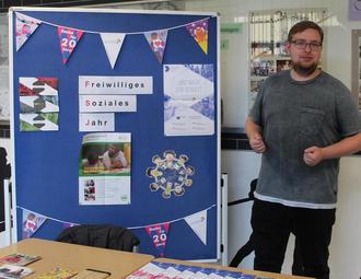An Info-Ständen konnten sich die Schüler*innen informieren. So z. B. auch bei Till Kirschner (FSJ-ler).
