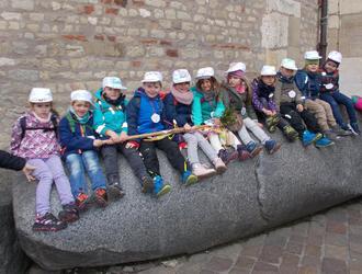 WERSHOFEN. Unter dem Motto „Ich bin immer bei Dir“ bereiteten sich die Maxikinder der kath. Kita St. Vincentius Wershofen intensiv auf die Wallfahrt nach Trier vor. Sie hörten die Legende, wie der Hl. Rock, von dem man annimmt, es sei das Gewand von Jesu, nach Trier kam. Mit Dias und dem Bilderbuch: „Was sucht die Maus im Dom“ lernten sie den Dom schon vor ihrem großen Tag kennen. In Absprache mit Pfarrer Justen erforschten sie die Pfarrkirche Wershofen. Die Kinder stellten fest, dass viele Dinge, z. B. Taufbecken, Altar, das ewige Licht und der Tabernakel in allen Kirchen zu finden ist. Am 25. April ging es endlich los. In einem großen Bus, finanziert vom Förderverein Wershofen, kurvten die Maxis durch die Eifel über die Autobahn nach Trier. Sie machten sich sofort auf die Suche nach dem Dom und hatten ihn schnell gefunden. Als erstes wurde auf der Bistumskarte ein Fähnchen platziert und für den Pilgerstab gab es die Plakette mit dem Regenbogen. Zur Zaubershow ging es in den Pfarrsaal. Hier durften die Kinder ihre Zauberkünste unter Beweis stellen und ein Kind aus der Gruppe zauberte sogar auf der Bühne. Als nächstes stand die Domführung an. Die Kinder entdeckten viele der vorher besprochenen Gegenstände und Tiere. Besonders die beiden Bronzemäuse und die Hl. Rock Kapelle begeisterten die Kinder sehr. Nach diesem anstrengenden Vormittag hatten die Kinder sich eine Mittagspause und ein Eis verdient. Mit neuen Kräften ging es zum Abschlusswortgottesdienst, der von Weihbischof Peters zelebriert wurde, in den Dom zurück. Mit Gottes Segen wurde die Heimreise angetreten. Auf dem Teufelsstein wurde noch schnell ein Foto gemacht und so manch einer brauchte den Halt des Nachbarn. Ganz erschöpft und müde schlief der ein oder andere Pilger ein. Sicher werden die kleinen Pilger noch lange an diesen Tag zurückdenken.