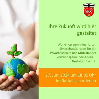 | - | Thema: Der Fokus in diesem Workshop liegt auf den Privathaushalten und der Mobilität in der Verbandsgemeinde Adenau. Ziel ist es die erarbeiteten Maßnahmen auf die spezifischen Anforderungen des Klimaschutzkonzeptes der Kommune anzupassen. |