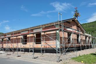 Am Neubau der Tagespflege in Hönningen Liers ist seit kurzem ein geschmückter Baum zu sehen – Zeichen für das Richtfest, das in diesen Tagen gefeiert wurde. Zahlreiche Gäste freuten sich gemeinsam über diesen Meilenstein im Zuge des Bauprojekts – unter ihnen auch die Bürgermeister der Verbandsgemeinden Adenau und Altenahr, Guido Nisius und Dominik Gieler, und Vertreter des Gesundheitshilfswerks action medeor, das den Bau der Tagespflege finanziell unterstützt.