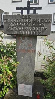 Im Rahmen des einhundertjährigen Jahrestages des Separatistenaufstandes im Rheinland im letzten Jahr, brachte der gebürtige Adenauer Franz Boeder den Vorschlag ein, am Denkmal neben dem Adenauer Rathaus ein Hinweisschild anzubringen, dass die Bedeutung dieses Denkmals erläutert. Mit Unterstützung der Firma Köllemann, die das Schild in ihrem hochmodernen Maschinenbauunternehmen anfertigte, konnte nun das Schild mit folgendem Text angebracht werden: