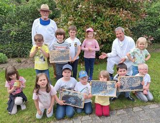 Am 13. Mai besuchte der „Spieltreff Niederadenau“ mit 14 Kindern und zehn Erwachsenen den Imker Rudolf Tschöpe in Schuld. An diesem sonnigen Nachmittag vermittelte er, unterstützt von seinem Imkerkollegen Rainer Koch, den Kindern viel Wissen über die Honigbiene.