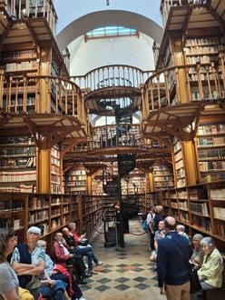In Maria Laach angekommen stand dann eine exklusive Führung hinter die historischen Mauern der Benediktinerabtei. Neben der imposanten romanischen Abteikirche, die als eines der schönsten Baudenkmäler der Region gilt, öffneten sich für die Gruppe auch die Türen zur beeindruckenden historischen Klosterbibliothek, sowie zur Hospiz Kirche mit der darunter gelegenen Gruft. Die Teilnehmer erhielten faszinierende Einblicke in die jahrhundertealte Geschichte und das klösterliche Leben, das von Spiritualität, Bildung und Gemeinschaft geprägt ist.