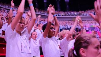 Die Schüler waren mit Freude im Chor der 6000 Stimmen dabei.
