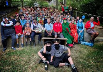 Die DJK Stadtlohn, die schon mehr als 50 Jahre in jedem Sommer ihr Jugendzeltlager in Hönningen aufschlägt, besucht auch schon fast so lange alljährlich die Theateraufführungen auf der Freilichtbühne in Schuld. Und immer sorgen sie dort für eine Riesenstimmung. In diesem Jahr besuchte man auch die Aufführung von „Jim Knopf und die Wilde 13“ und alle waren, wie immer begeistert. Gerne machte man auch danach Fotos mit den Schauspielern. In diesem Jahr hatten sich die Münsterländer etwas besonders ausgedacht. Sie gratulierten dem Ensemble zu 75-jährigen Bestehen mit einem Frühstückskorb und Süßigkeiten. Dies kam bei den Aktiven sehr gut an. Und alle freuen sich schon auf ein Wiedersehen im nächsten Jahr. Wer sich selbst ein Bild machen will, kann gerne noch kommen. Vor allem an den Freitagen und Samstagen gibt es noch gute Karten. Weitere Aufführungen im Zeitraum 15. Juli bis 6. August: immer samstags, 20.30 Uhr und sonntags, 15.30 Uhr. Außerdem finden am Freitag, 28. Juli und 4. August jeweils um 19.30 Uhr Abendvorstellungen statt. Kartenvorverkauf unter ticket-regional.de/fbschuld. Weitere Informationen gibt es über die Homepage www.freilichtbuehneschuld.de